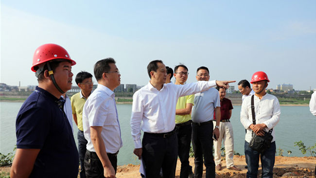 从资江南岸到北岸,许显辉一行边走边看,不时就征拆进度、工程质量和施工安全等问题提出建议和要求。