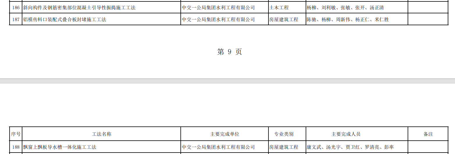 近日,在湖南省建设科技与建筑节能协会2023年度湖南省工程建设行业工法名单公示中,公司申报的《斜向构件及钢筋密集部位混凝土引导性振捣施工工法》、《铝模传料口装配式叠合板封堵施工工法》、《飘窗上飘板导水槽一体化施工工法》被评2023年度工程建设行业工法。其中,《斜向构件及钢筋密集部位混凝土引导性振捣施工工法》还在中国水利工程协会2023年度工法评审中获评2023年度水利行业工法。