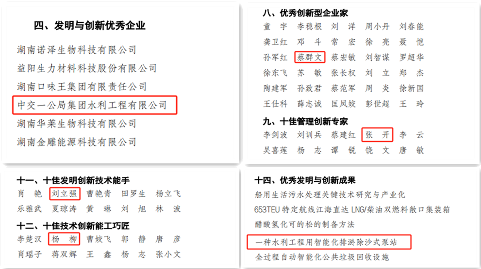 凭借卓越的创新能力和突出表现,公司荣膺“发明与创新优秀企业”称号。同时,公司各位杰出代表也在此次评选中大放异彩,公司总经理蔡群文被评为“优秀创新型企业家”;执行总经理张开被评为“十佳管理创新专家”;项目负责人刘立强荣获“十佳发明创新技术能手”称号;技术质量部副部长杨柳荣获“十佳技术创新能工巧匠”称号;“一种水利工程用智能化排淤除沙式泵站”发明专利被评为“优秀发明与创新成果”。