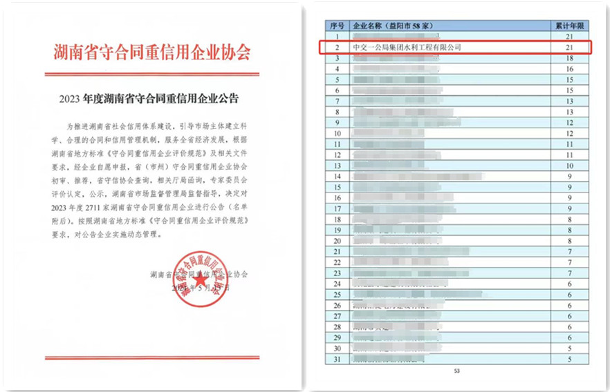 近日,湖南省守合同重信用企业协会公布了2023年度湖南省守合同重信用企业考核结果,公司荣获“2023年度湖南省守合同重信用企业”荣誉称号。截至目前,公司已连续21年获此殊荣,是益阳市唯二连续21年蝉联此奖项的企业。