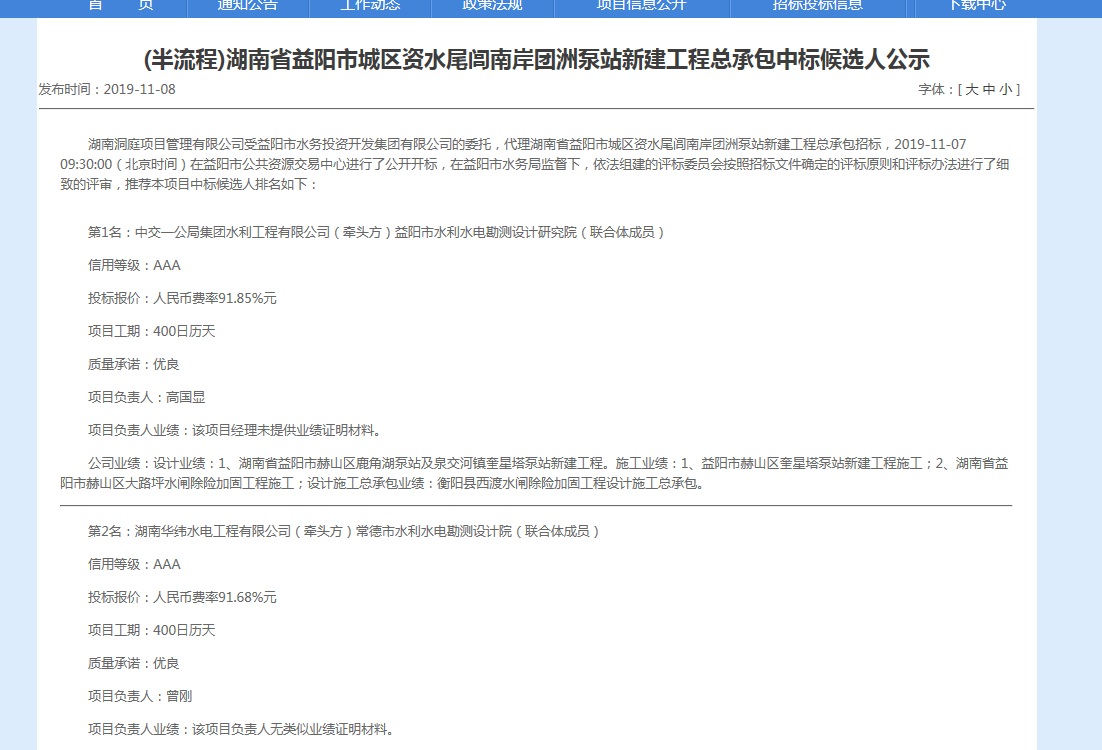 2019年11月7日,亚新官方网站-亚新(中国)与益阳市水利水电勘测设计研究院组成联合体参加了湖南省益阳市城区资水尾闾南岸团洲泵站新建工程总承包项目的投标,且顺利中标。