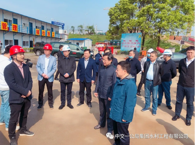 叶建春一行首先深入团洲泵站施工现场,听取了关于项目施工进程及防汛度汛工作开展情况的汇报,实地察看了防汛准备工作落实情况,对公司良好的发展势态和项目建设取得的进展给予充分肯定。叶建春强调,安全生产和防汛工作事关人民群众生命财产安全,事关经济发展、社会和谐稳定,做好这两项工作意义重大。他指出,项目部上下要强化政治意识、大局意识,清醒认识做好当前安全生产和防汛工作的极端重要性,牢牢绷紧安全生产和防汛工作这根弦,集中时间、集中力量、集中精力抓好各项工作;要认真分析今年的防汛形势,把各种隐患排查得更深一些,把各项工作做得更实一些,科学安排,周密部署,充分准备,全力以赴做好今年防汛工作。