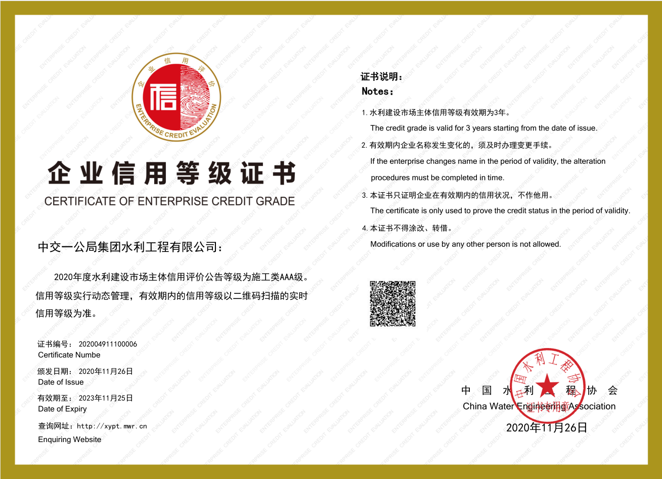 企业信用等级评价是衡量企业经营管理水平、信用程度和履约能力的重要标准,是企业信用特征的集中体现,对企业未来发展至关重要。此次水利公司荣获AAA级企业信用评级意味着公司的产品质量、管理水平和信誉程度又一次受到市场认可,是对公司水利工程建设领域综合实力的肯定,该荣誉能展现公司良好的企业形象与商业信誉,并取得良好的社会效应。