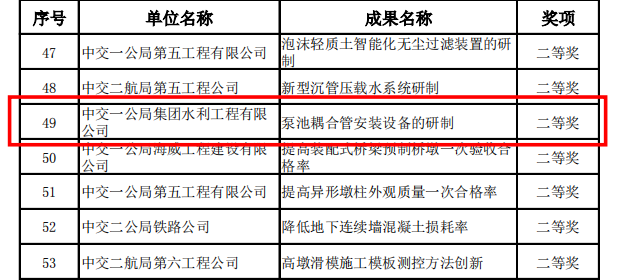 近日,由公司团洲泵站拓新QC小组申报的“泵池耦合管安装设备的研制”课题,荣获2021年度中国交建优秀QC成果二等奖,同时获得一公局集团及中国水利企业协会优秀QC成果。