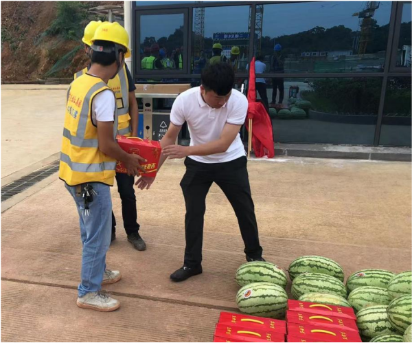 活动中,项目人员为各位职工发放凉茶、西瓜、解暑药等防暑物资,同时,项目部还开展了防暑降温知识普及、教育活动,进一步加强高温季节和高温作业职工劳动保护工作,为各职工牢固树立“安全第一、预防为主”安全意识。