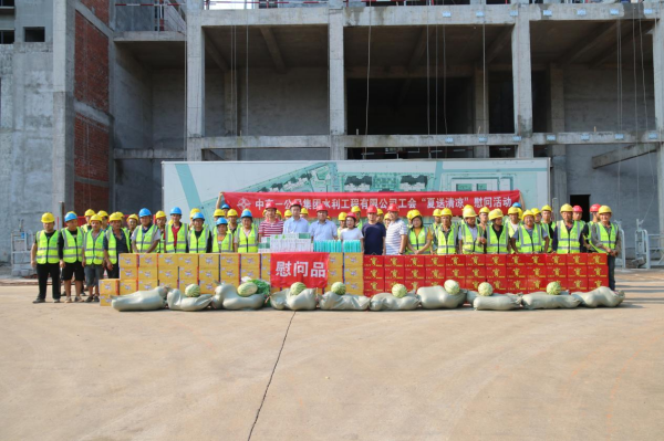张鑫先后来到南县棚户区改造PPP项目、益阳中交世通中心项目及益阳市第三人民医院项目慰问一线职工,为他们送上凉茶、藿香正气水、西瓜等慰问品,并合影留念。