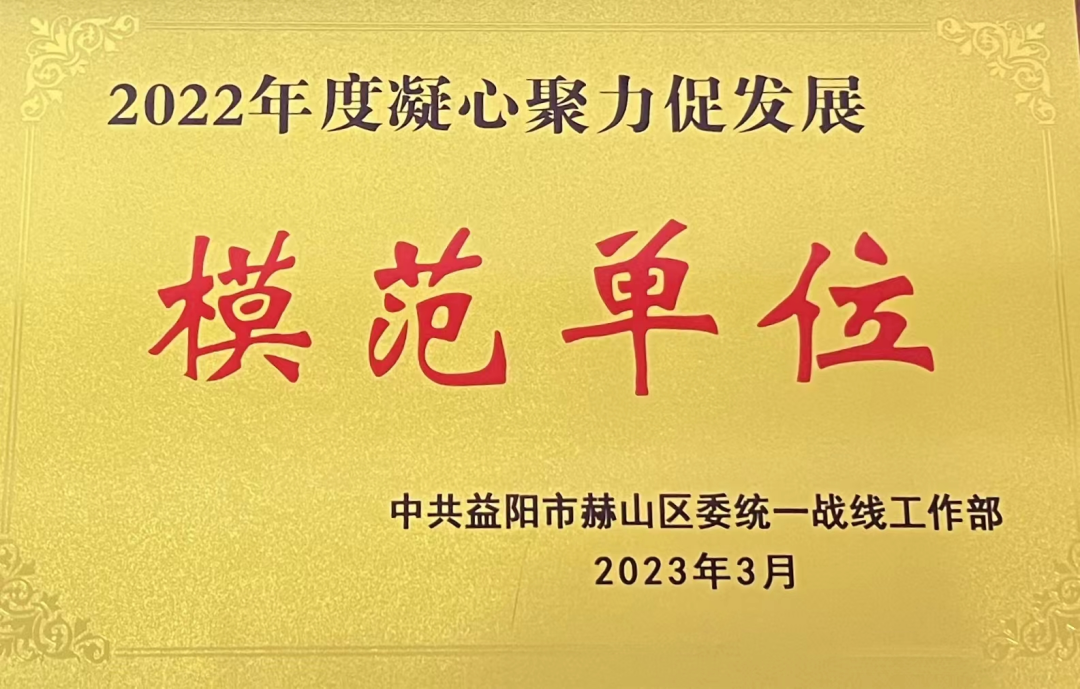 4月4日,公司被中共益阳市赫山区委统一战线工作部授予2022年度凝心聚力促发展模范单位荣誉称号,这是公司继2020年、2021年后,连续第三年获此殊荣。