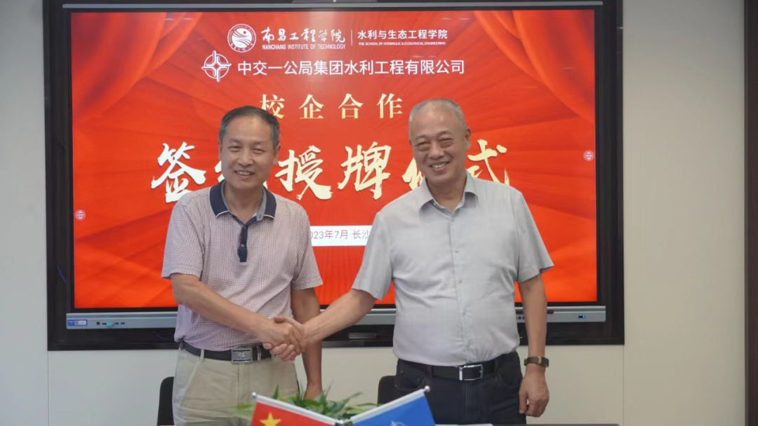 7月21日,公司和南昌工程学院水利与生态工程学院在勘测设计院举行校企合作签约仪式。南昌工程学院水利与生态工程学院党委书记、院长何习平,鄱阳湖水工程安全与水资源高效利用国家地方联合工程实验室专职副主任甘建军、水利工程教研室主任蔡高堂,公司总经理蔡群文、副总经理张开、设计院院长肖相纯、执行院长容富及相关部门负责人参加本次仪式。
